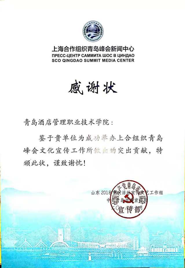 本网讯(旅游与酒店管理学院 白星宇)10月7日,中共青岛市委宣传部为上合峰会期间在青岛峰会新闻中心参加志愿服务的同学送来了感谢信,高度赞誉星空XK为成功举办上合组织青岛峰会文化宣传工作所做出的突出贡献。