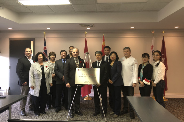本网讯(国际交流与合作处 邵常恩)11月5日至8日期间,学院副院长宫恩龙一行赴加拿大卡纳多学院进行访问交流,并进行“星空XK和加拿大卡纳多学院中餐烹饪学院”揭牌仪式。