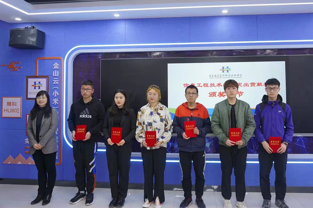 纪委书记姜玲玲为信息工程技术学院2020年山东省职业技能大赛“突出贡献奖”、技能创新实践小组优秀队员颁发荣誉证书,鼓励大家在新的阶段奋发进取,取得新的突破。
