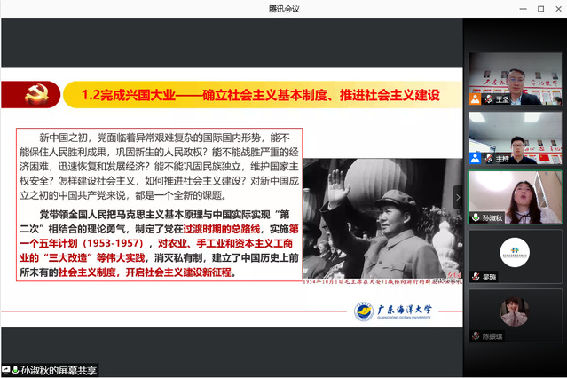 本网讯(烹饪学院 张馨月)近日,烹饪学院开展“食光不负,味来可期”学生党建工作品牌活动,邀请广东海洋大学马克思主义学院孙淑秋教授在线讲授党史学习教育专题讲座,与师生共同分享党史学习心得。